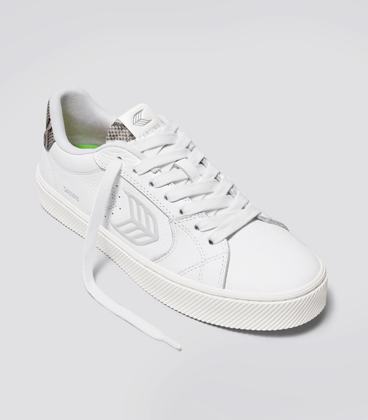 SALVAS White Leather Silver Cloud Logo Snake Skin Print Sneaker SALVAS